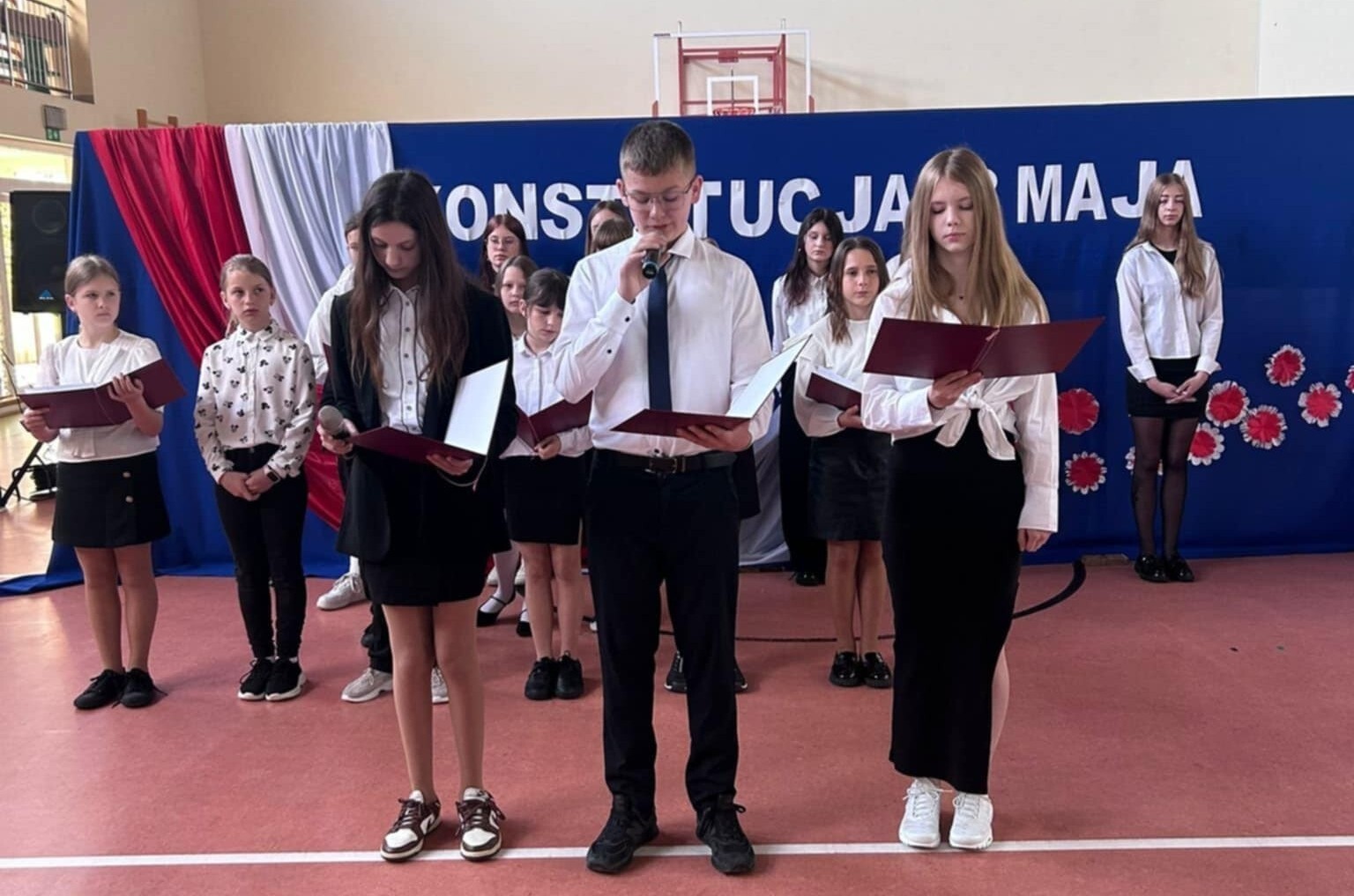 Całość wydarzenia uświetniła oprawa muzyczna w wykonaniu uczniów, którzy zaprezentowali piosenki i pieśni patriotyczne nawiązujące do tematyki święta. Następnie uczniowie zaprezentowali przygotowane wiersze, które w ciekawy i wzruszający sposób przybliżyły znaczenie i okoliczności uchwalenia Konstytucji 3 Maja. Podkreślono też, jak ważne są wartości wolności, demokracji i odpowiedzialności za Ojczyznę, zapisane w Konstytucji sprzed ponad dwóch wieków, oraz jak aktualne pozostają one również dziś.
