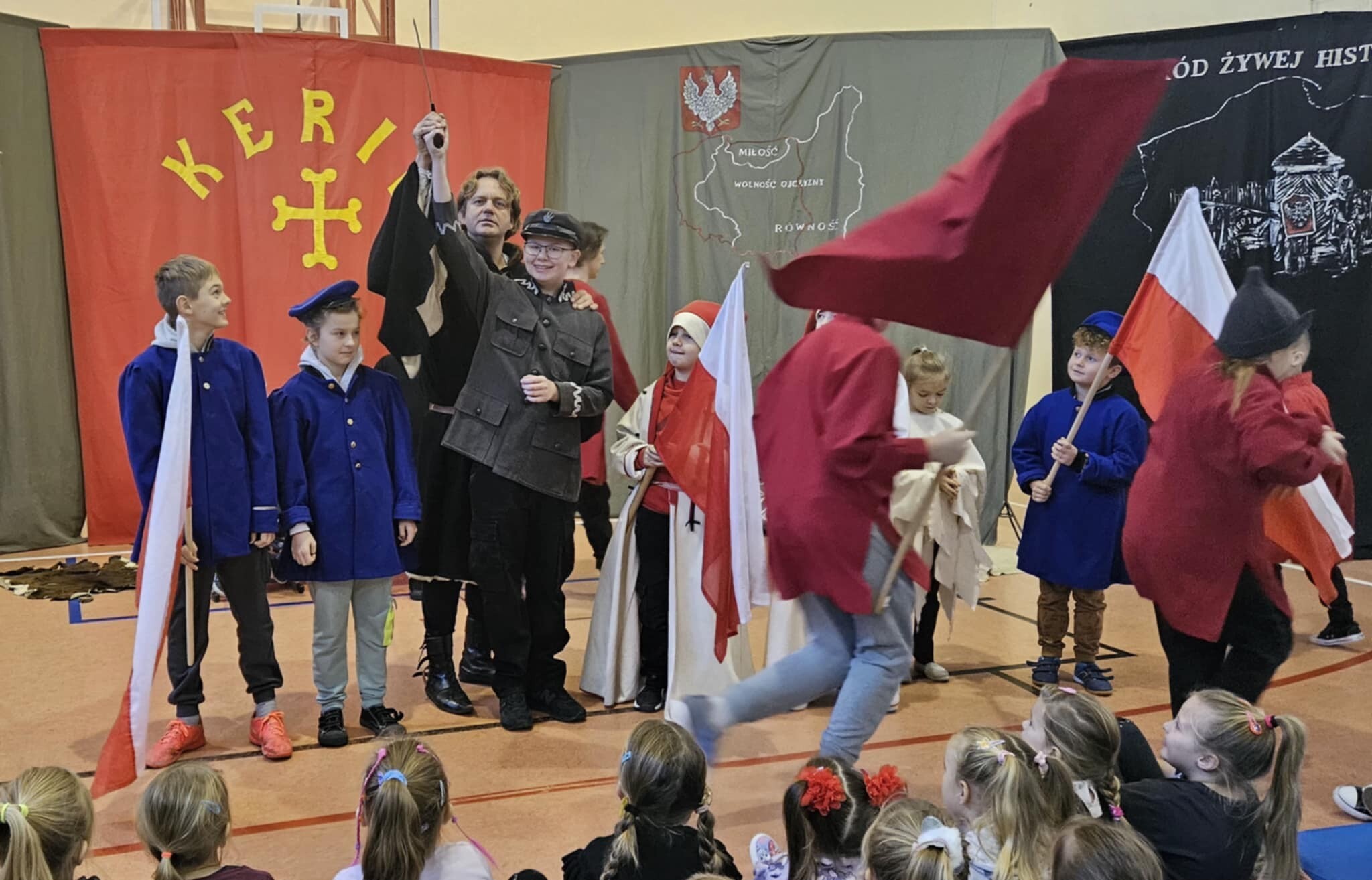 Zajrzeliśmy do Konstytucji 3 Maja, byliśmy świadkami powstania kościuszkowskiego (przypomnieliśmy sobie Wojciecha Bartosa), a także zobaczyliśmy wspaniałego Marszałka Piłsudskiego, obserwując jego poczynania od lat najmłodszych aż do bitwy warszawskiej. Prowadzący przypomnieli takie fakty z naszej historii, jak udział polskich legionistów w walkach u boku Napoleona, powstanie Księstwa Warszawskiego, okres zaborów i walki z germanizacją i rusyfikacją oraz z najazdem bolszewickim i bitwie warszawskiej.
