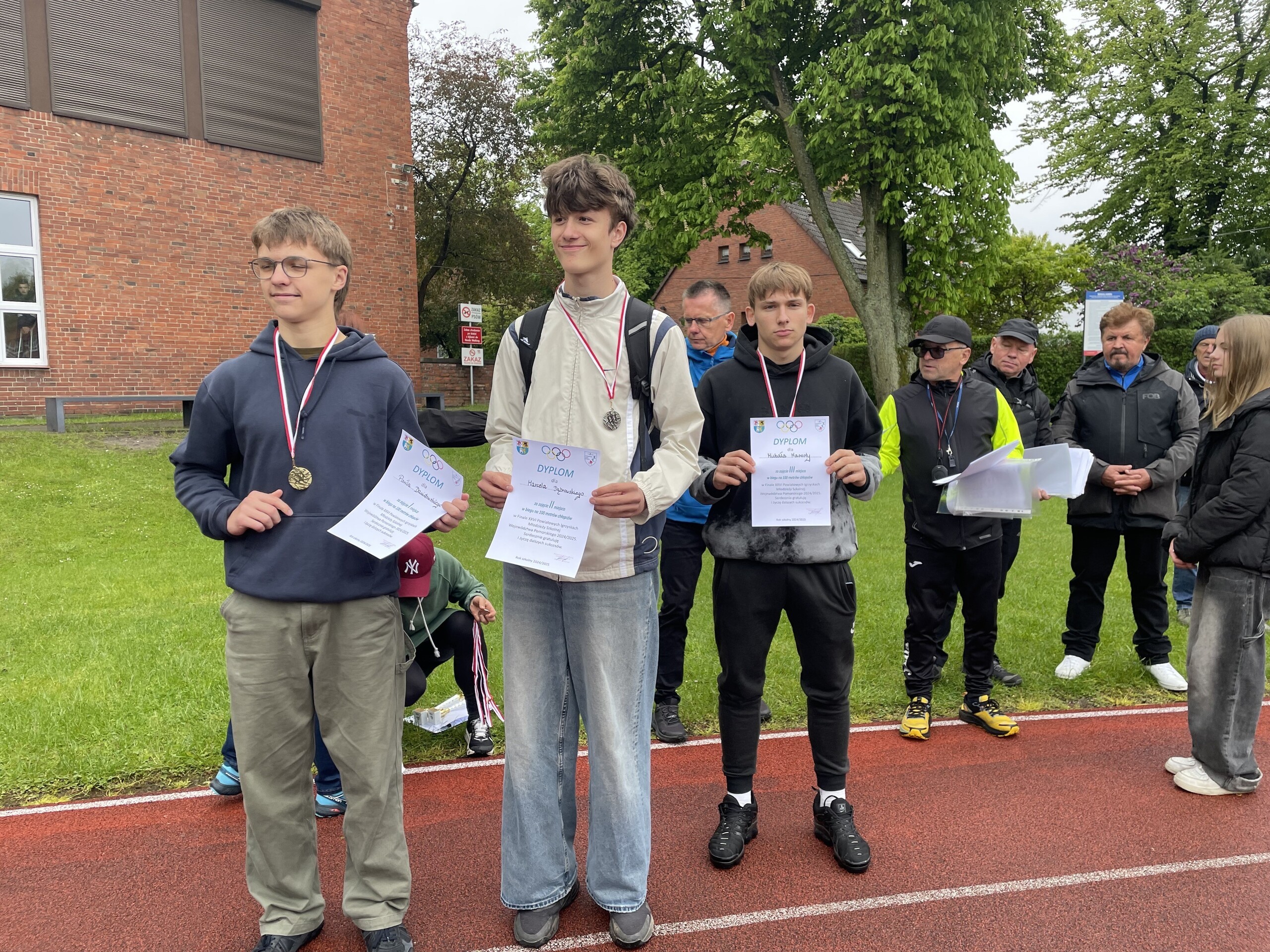 Dzisiaj Michał Maszotta z klasy 8 reprezentował naszą szkołę i gminę podczas Powiatowych Mistrzostw Lekkoatletycznych w Lęborku! O tytuły mistrzowskie walczyły aż 3 gminy i 2 miasta!. Mimo chłodnej i deszczowej pogody, zawodników rozgrzewała prawdziwa sportowa rywalizacja i ogromna chęć zwycięstwa. Michał spisał się znakomicie!. W biegu na 100 m osiągnął świetny czas 13.56 sek, a w kolejnym starcie poprawił wynik na 13.01 sek, co dało mu 3. miejsce w powiecie!