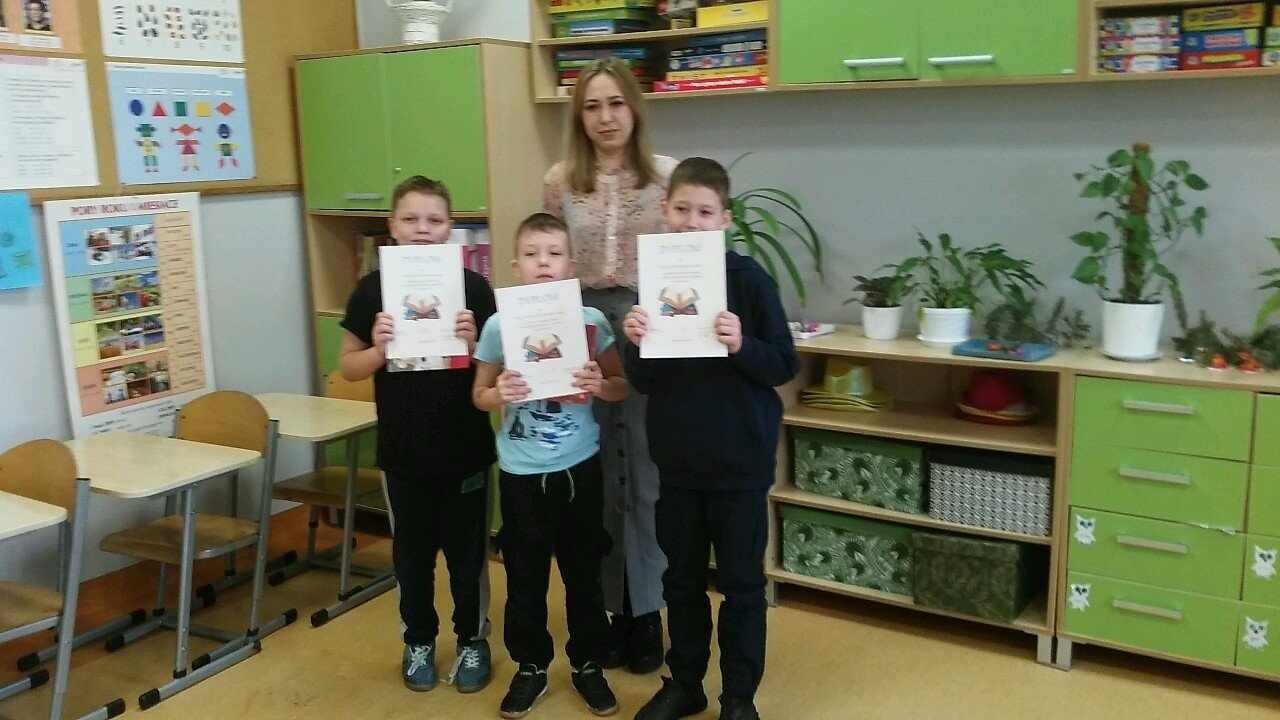 6 marca odbył się Szkolny Konkurs "Czytania ze zrozumieniem" dla klas I - III, Tytuł Mistrza otrzymali: