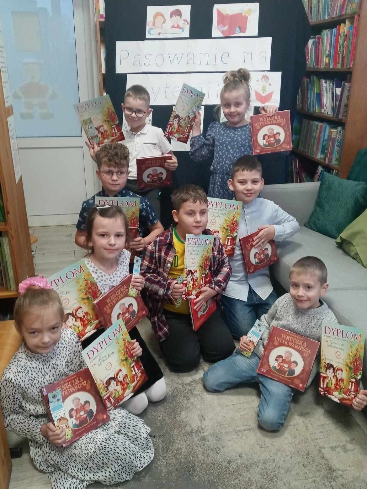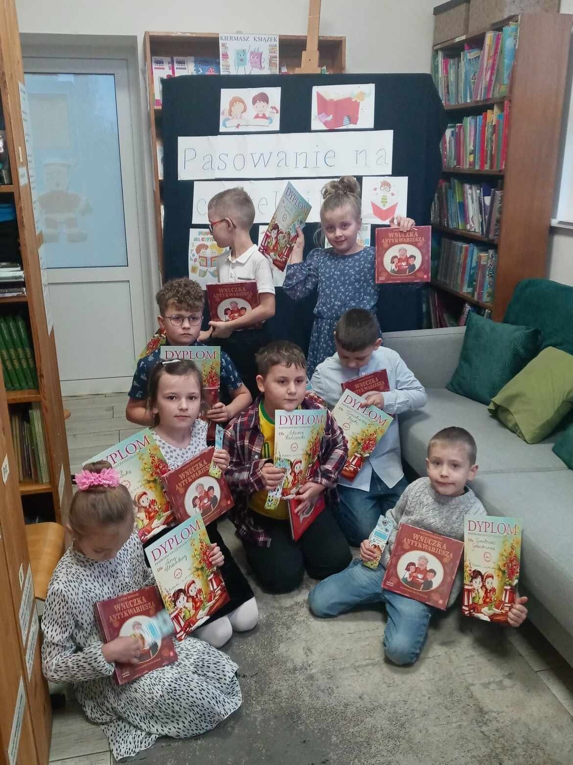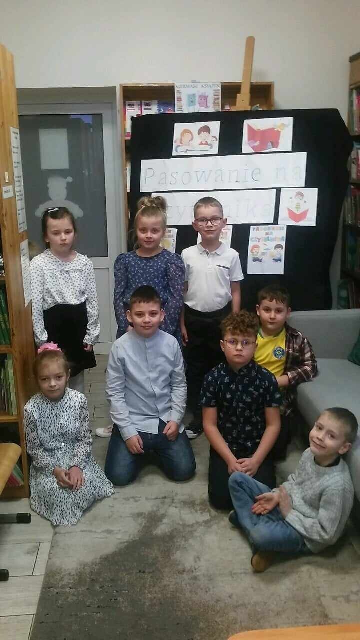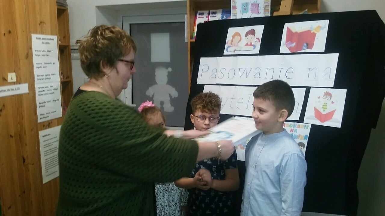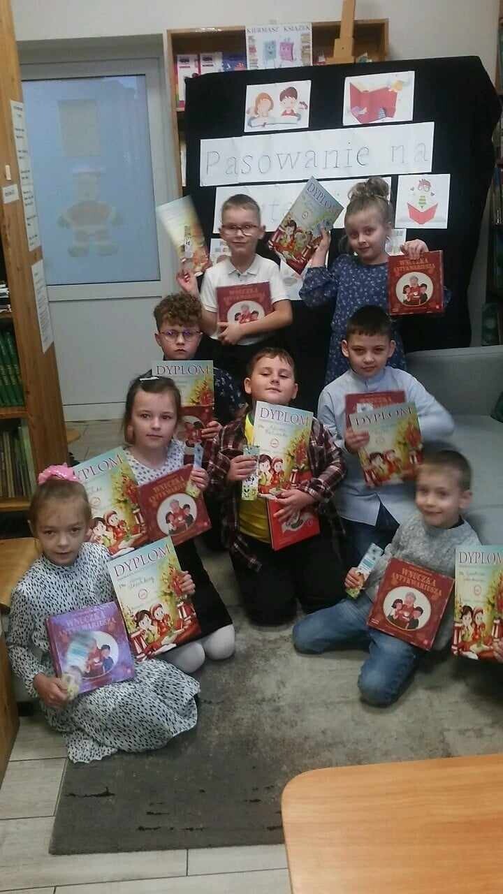 Pierwsze spotkanie z biblioteką szkolną to wyjątkowa uroczystość, a pierwsze wypożyczanie książek powinno na długo pozostać w pamięci dziecka. Nic więc dziwnego, że ślubowanie przyszłych czytelników z klasy pierwszej, które odbyło się 10 grudnia 2024r., było dla nich ogromnym przeżyciem. Pasowanie na czytelnika to oficjalne przyjęcie uczniów do grona czytelników szkolnej biblioteki. Po wprowadzeniu dzieci uroczyście przyrzekły, że będą szanować książki i sumiennie wypełniać obowiązki czytelnika. Następnie każdy pierwszoklasista otrzymał dyplom, zakładkę do książki, a także wyprawki czytelnicze ufundowane przez Instytut Książki.