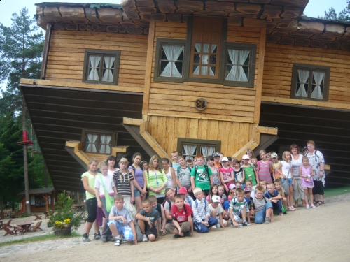 21 czerwca uczniowie uczęszczający na zajęcia języka kaszubskiego wybrali się na wycieczkę do Szymbarku. Głównym celem było zachęcanie uczniów do odwiedzania miejsc i obiektów gdzie nasze serca i nasze dziedzictwo, kształtowanie miłości do Ojczyzny i dumy z narodowych wartości. Ważnym celem było także obejrzenie domu ... do góry nogami. To symbol naszych czasów - wiata pełnego sprzeczności i zagrożeń, których twórcami są ludzie. Krótki pobyt w domu do góry nogami powoduje zaburzenie zmysłu równowagi, z trudnocią stawia się kolejne kroki (odczuliśmy to na własnej skórze...).