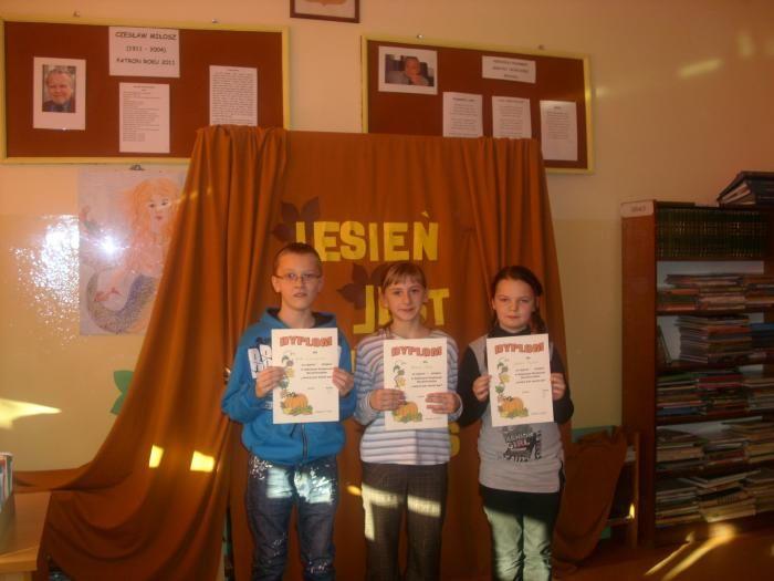 Czwartek,17 listopada 2011r., na długo pozostanie w sercach wielu uczniów. Tego dnia odbył się konkurs recytatorski pod hasłem „Jesień jest wśród nas” zorganizowany przez szkolną bibliotekę. Jego celem było uwrażliwienie na piękno słowa poetyckiego, upowszechnianie kultury żywego słowa, prezentacja umiejętności artystycznych dzieci oraz dostarczanie doznań estetycznych i emocjonalnych.