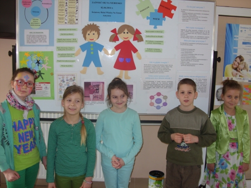 Wytypowani uczniowie z kl. II wraz z panią Mariolą Karszną przygotowali informacyjną gazetkę szkolną poruszającą zagadnienia związane z tematem autyzmu.