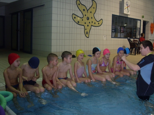 10.12.2013 r. grupa uczniów z kl. II i IV wyjechała wraz z opiekunami na basen do Lęborka. Celem wyjazdu było propagowanie wśród dzieci zdrowego stylu życia, profilaktyka wad postawy, podniesienie sprawności fizycznej, wpajanie prawidłowych nawyków higienicznych oraz zachęcanie uczniów do uprawiania sportu. Pod opieką pani instruktor, która spotkanie rozpoczęła od przypomnienia regulaminu korzystania z pływalni dzieci rozpoczęły zajęcia, które obejmowały podstawowe ćwiczenia w wodzie. Aktywnie i twórczo uczniowie spędzili razem czas na basenie. Na koniec wszyscy podekscytowani i zadowoleni wrócili do szkoły.