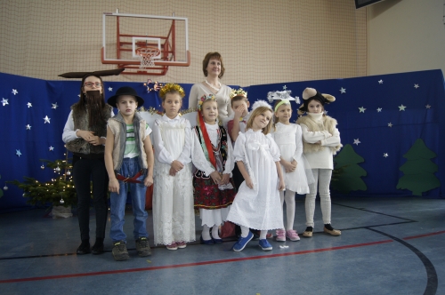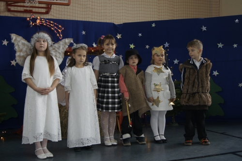 W ostatnim dniu nauki przed Świętami od rana w naszej szkole słychac było kolędy. O godzinie 10.00 uczniowie z kl. I - III zaprezentowali przepiękne jasełka, które wprowadzili uczestników spotkania w prawdziwy świąteczny nastrój. Po części artystycznej p. dyrektor podziękowała młodym artystom za występ i skierowała ciepłe słowa i świąteczne życzenia do uczniów, pracowników oraz rodziców, którzy przybyli na uroczystośc. Następnie dzieci wraz z wychowawcami udali się do pięknie ustrojonych klas na wigilię. Uczniowie łamali się opłatkiem składając sobie świąteczne życzenia. Wycowawcy ze swoimi uczniami oraz rodzice zasiedli do stołu, na którym nie zabrakło pierogów, barszczyku, owoców i innych pyszności. Nie zabrakło również wspólnego kolędowania oraz miłej, bożonarodzeniowej atmosfery.