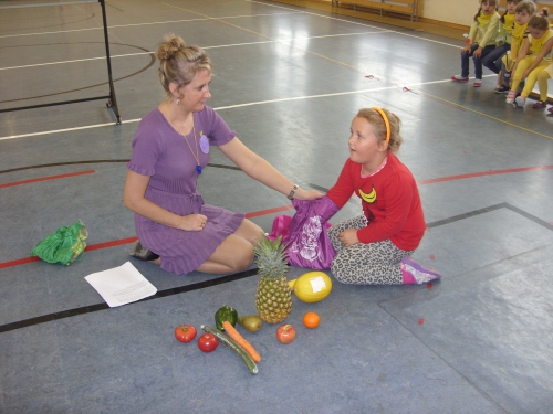Na poczatku spotkania utrwaliliśmy sobie, dlaczego warto codziennie jeść owoce i warzywa. Podczas wspólnej zabawy przy piosenkach o jesiennej tematyce dzieci miały okazję się zintegrować. Odbył się również konkurs smaku: "Czy wiesz, co jesz ?" oraz konkurs dotyku "Czy wiesz, co to jest ?"