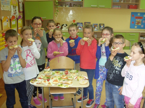 Trzecioklasiści przynieśli potrzebne, zdrowe produkty i wykonali witaminowe, kolorowe i smaczne kanapki według własnych upodobań.