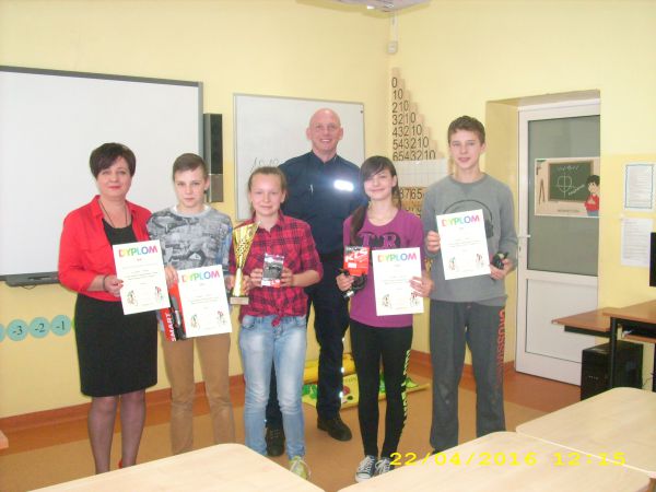 Naszą szkołę reprezentowali uczniowie: Monika Dziemiańczyk, Klaudia Jonas, Hubert Domaros i Dominik Sęktas. Zawodnicy z dużym zaangażowaniem pokazali swoje ogromne możliwości i po raz kolejny zostali najlepszą drużyną w naszej gminie. Będą reprezentować gm. Wicko w eliminacjach powiatowych, które odbędą się 28 kwietnia 2016 roku na terenie Szkoły Podstawowej nr 3 przy ulicy Kossaka w Lęborku.