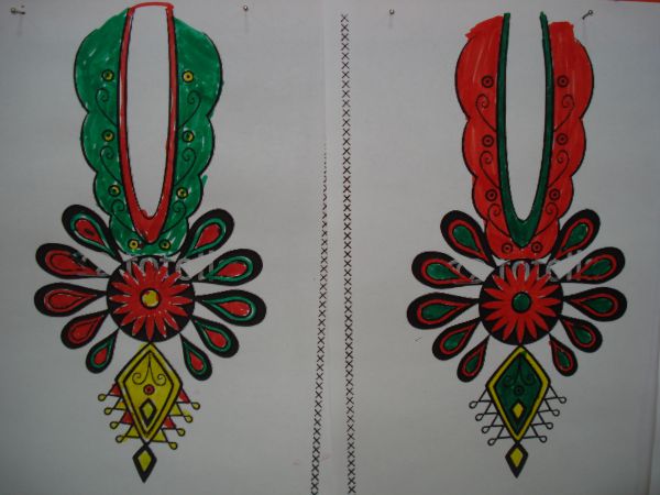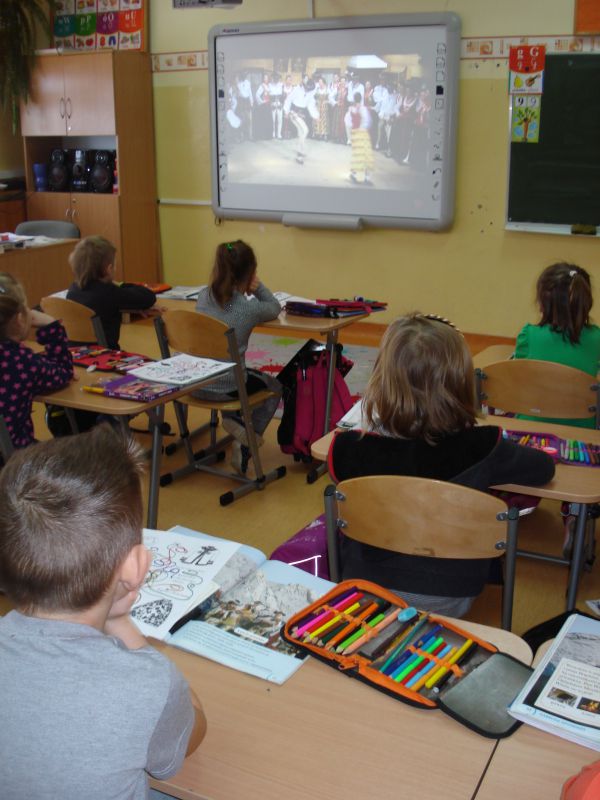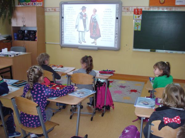 Obejrzeliśmy zdjęcia przedstawiające wytwory sztuki ludowej, fragmenty filmów przedstawiających tańczących górali, grających na instrumentach góralskich i mówiących gwarą. Porównywaliśmy hafty góralskie i przyjrzeliśmy się ich wielu rodzajom. Na zakończenie zajęć pokolorowaliśmy flamastrami wzory parzenic góralskich.