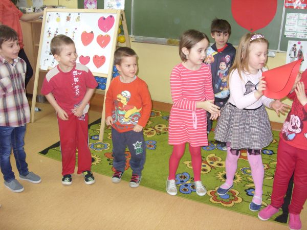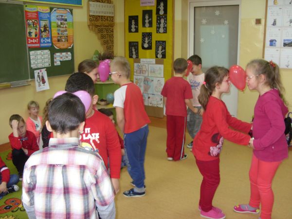 14 lutego uczniowie klasy I zaprosili swoich młodszych przyjaciół do wspólnej zabawy walentynkowej. Spotkanie miało na celu przybliżenie dzieciom tradycji walentynkowych, wzmacnianie więzi emocjonalnych oraz usprawnianie koordynacji ruchowej poprzez taniec i muzykę.