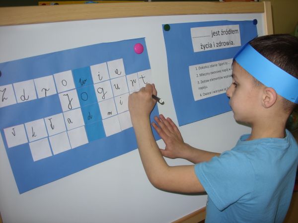 Dzieci rozwiązywały krzyżówkę, której hasłem jest woda- źródłem życia i zdrowia.