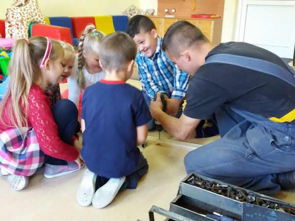 Dzień Chłopaka w oddziale przedszkolnym na całego. Było po męsku (mierzenie, wiercenie, wkręcanie, męska wycieczka do kotłowni), elegancko (krawaty od dziewczyn) i słodko (brum-lizaczki i ciepłe lody). Przygotowane wieszaczki będziemy jeszcze malować w poniedziałek.