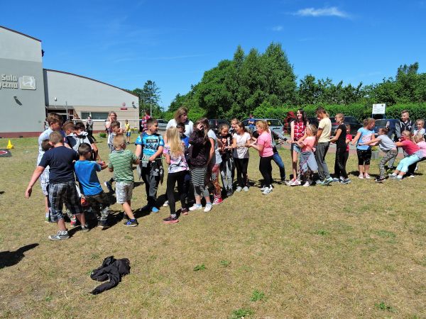 1 czerwca na całym świecie dzieci mają swoje święto. W naszej szkole ten niezwykły dzień obchodziliśmy 5 czerwca. Najpierw wszyscy zebrali się na boisku szkolnym, które na chwilę zamieniło się na wybieg dla modelek i modeli. Uczniowie z klas IV - VI oraz II gimnazjum zaprezentowali wykonane przez siebie ekologiczne stroje, które wykonane były między innymi z gazet, worków na śmieci, kubeczków platikowych oraz nakrętek. Po pokazie 5-osobowe zespoły z każdej klasy mogły sprawdzić swoją kondycję w różnych konkurencjach sportowych. Były to np. drużynowe chodzenia na drewnianych nartach, skakanie przez gigantyczną skakankę, bieg z tacą, trafianie krążkami do celu i wiele innych. Jak co roku Rada Rodziców przygotowała drobny poczęstunek w postaci waty cukrowej oraz stoiska z popcornem i kilka atrakcji - kącik malowania paznokci, malowanie twarzy. Były również kolorowe tatuaże. Dopisała nam pogoda, humory i energia.