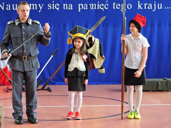 Młodzi ludzie zostali zapoznani z sylwetkami wybitnych Polaków, m. in. Tadeusza Kościuszki i Józefa Piłsudskiego oraz przypomnieli sobie tragiczną historię naszej ojczyzny: od czasów trzech rozbiorów Polski, poprzez okres zaborów, aż do I wojny światowej uwieńczonej odzyskaniem niepodległości. Członkowie zaproszonej grupy zarysowali także kontekst polityczny i ekonomiczny oraz zademonstrowali broń i umundurowanie Polaków walczących za ojczyznę: kosynierów, legionistów czy też uczestników powstania listopadowego. Chętni uczniowie z zainteresowaniem przymierzali dawne mundury oraz podejmowali próbę walki, wykorzystując muszkietery, XVIII - wieczną kosę czy tez broń z początków XIX wieku.