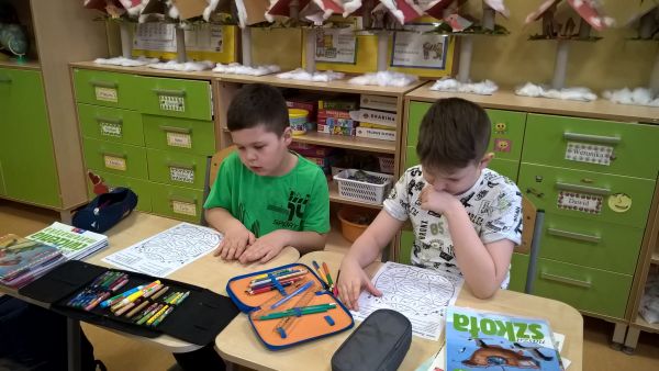 Wykonały również zadania zawarte na Gramatycznej Pisance i pokolorowały ją zgodnie z kodem.