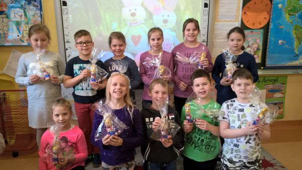 Ostatniego dnia szkoły przed świętami dzieci odwiedził zajączek wielkanocny, który podarował im słodkie prezenty.
