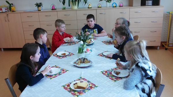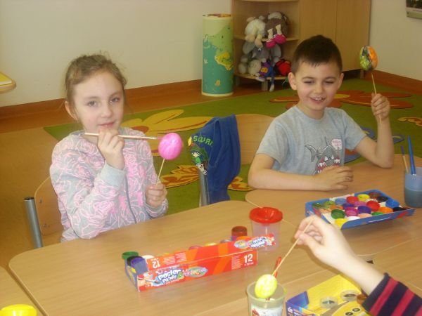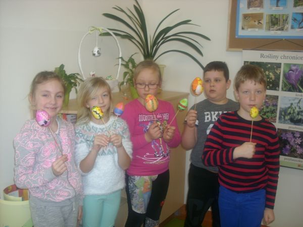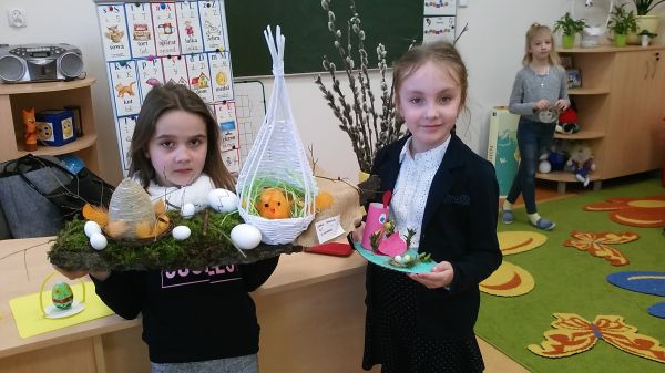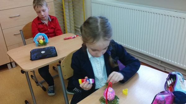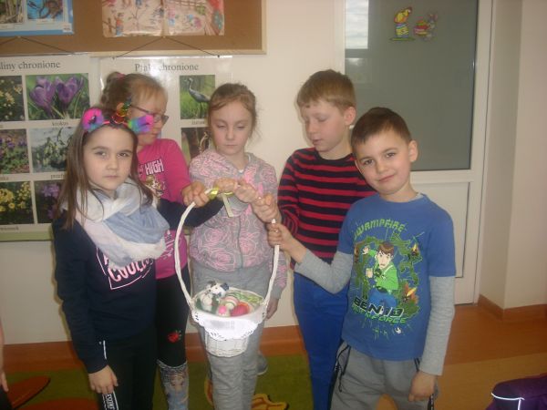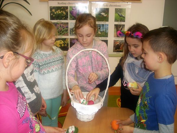 Dzieci z klasy pierwszej oczekując na Święta Wielkanocne zapoznały się z polskimi zwyczajami świątecznymi. Wykonały piękne koszyczki z pisanką.