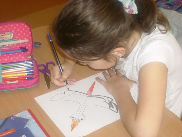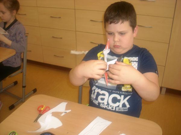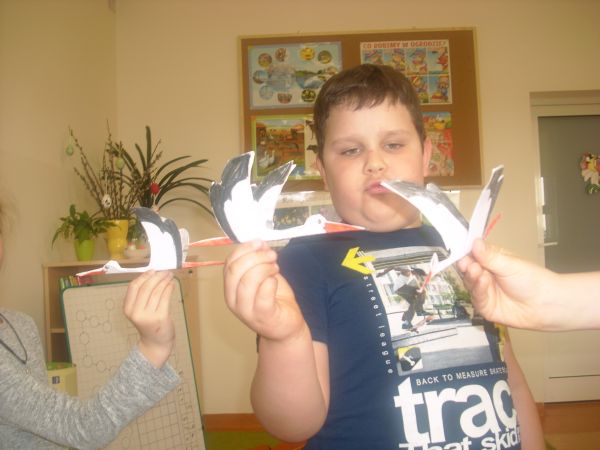 Zauroczeni zachowaniem ptaków postanowili wykonać małe bocianki z tektury.