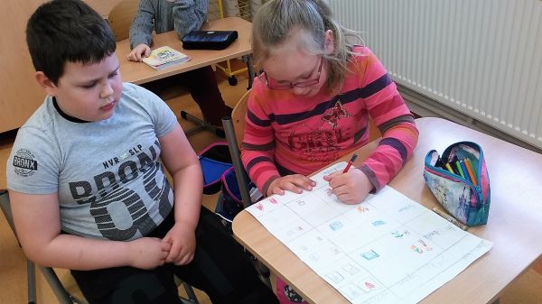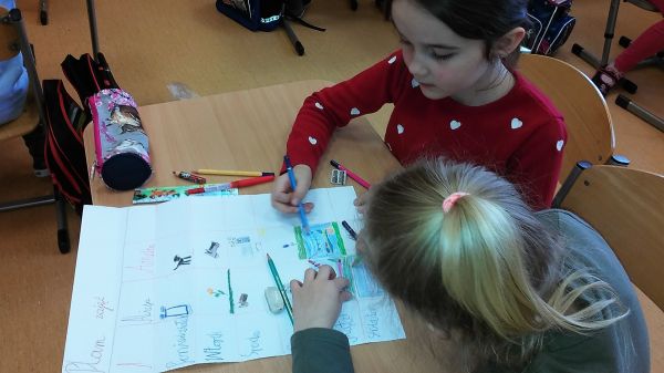 Podczas kolejnych zajęć wspólnie zastanawiali się i próbowali odpowiedzieć na pytanie Jaki wpływ na nasze zdrowie ma aktywny tryb życia? Dzieci opowiadały o swoich formach aktywności, a następnie w parach wykonały plany zajęć.