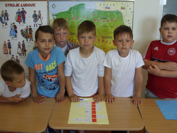 Następnie zespoły dziewczynek i chłopców współzawodniczyły ze sobą rozwiązując zadania popularyzujące wiedzę o Polsce i kulturze narodu. Uczestnicy wspólnie rozwiązywali krzyżówki, układali puzzle, rozpoznawali patriotyczne utwory muzyczne i zabytki , udzielali odpowiedzi na pytania oraz zaznaczali ważne miejsca na mapie Polski.