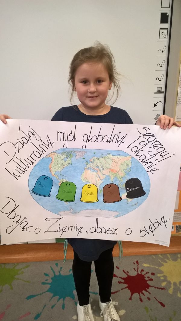 Ania Sanocka wykonała także pracę plastyczną na konkurs organizowany przez Młodzieżowy Dom Kultury w Lęborku "Działaj kulturalnie - myśl globalnie - segreguj lokalnie", a Weronika i Dominika Kobiela oraz Michał Domarecki wzięli udział w konkursie plastycznym "Zagrożenie w gospodarstwach rolnych".