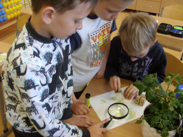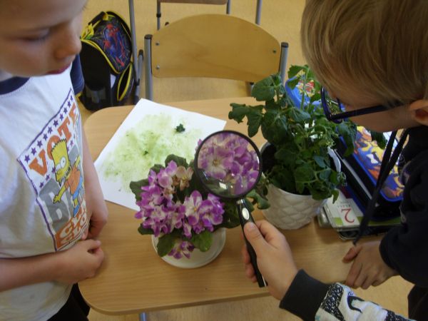 Uczniowie poznali także cechy kwiatów wiatropylnych i owadopylnych.