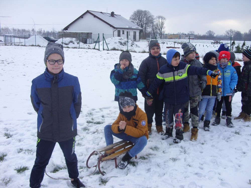 W zeszły piątek, wychowawczynie z kl. I-III w ramach lekcji wychowania fizycznego przeprowadziły z uczniami zajęcia rekreacyjne na śniegu. Zimowym zabawom nie było końca - dzieci urządzały różne zawody. Chociaż nie bardzo można było ulepić z mrożonego śniegu bałwana, to i tak uczniowie bawili się wyśmienicie. Była to świetna okazja, aby dzieci zażyły ruchu na świeżym powietrzu.