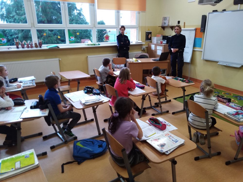 W czwartek 9.01. 2020 r. do szkoły przyjechały policjantki z KPP w Lęborku w ramach realizowania projektu edukacyjnego "Uczę się bezpieczeństwa", którego twórcą jest Wydział Prewencji Komendy Wojewódzkiej Policji w Gdańsku. Jest to inicjatywa dedykowana uczniom klas pierwszych szkół podstawowych województwa pomorskiego. Zajęcia edukacyjno -profilaktyczne realizowane będą w następujących pięciu obszarach zagadnieniowych.