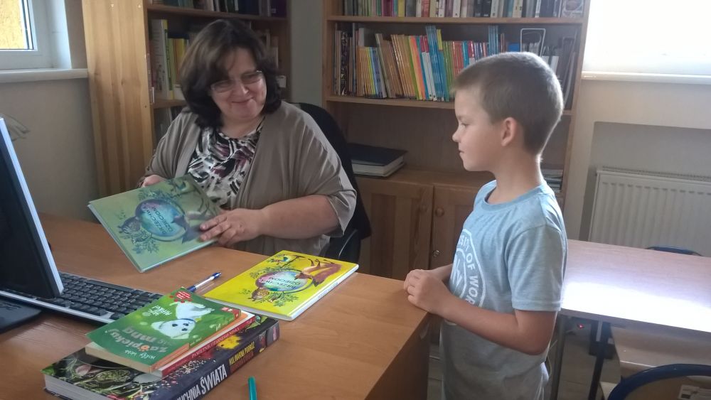 Dnia 19 września uczniowie klasy pierwszej zostali przyjęci do grona czytelników biblioteki szkolnej. Zanim to nastąpiło Pani Ola szczegółowo zapoznała z regulaminem korzystania z biblioteki oraz zasadami wypożyczania książek. Dzieci poznały najważniejsze działy księgozbioru, zwłaszcza dział książek dla najmłodszych czytelników.