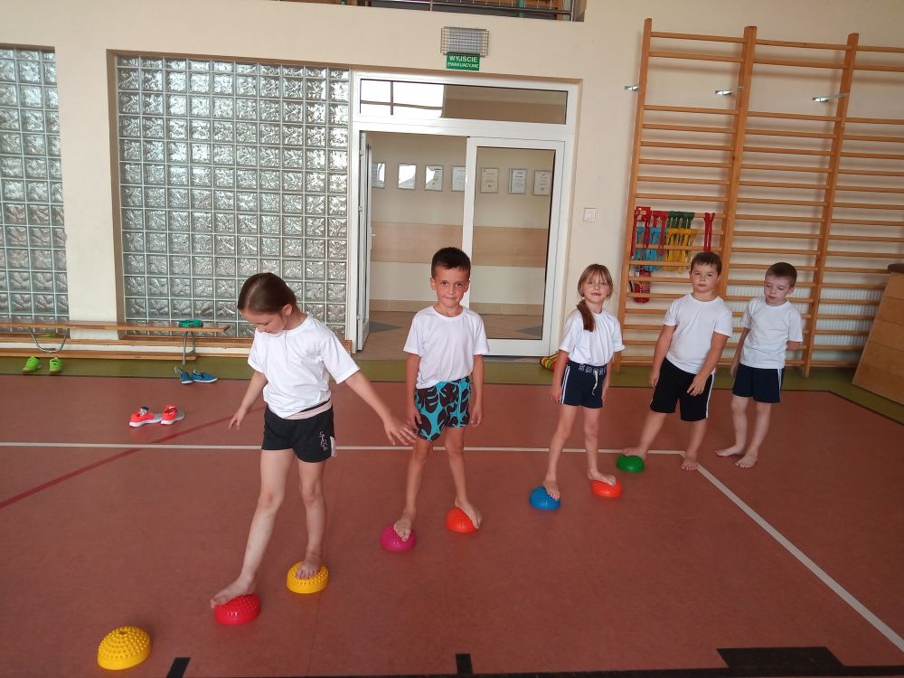 Uczniowie, którzy biorą udział w gimnastyce korekcyjnej wykonują ćwiczenia bardzo chętnie i starannie.