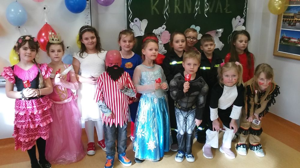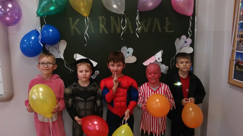 Karnawał to czas pląsów, zabaw i balów także dla najmłodszych. Dzieci z klasy I na ten niezwykły bal maskowy czekały wiele tygodni. Bawiły się w atmosferze skocznej muzyki i bajecznego wystroju. Uczniowie z dumą prezentowały stroje księżniczek, strażaków, Spidermana, Batmana i pirata oraz pieska i różowej pantery.