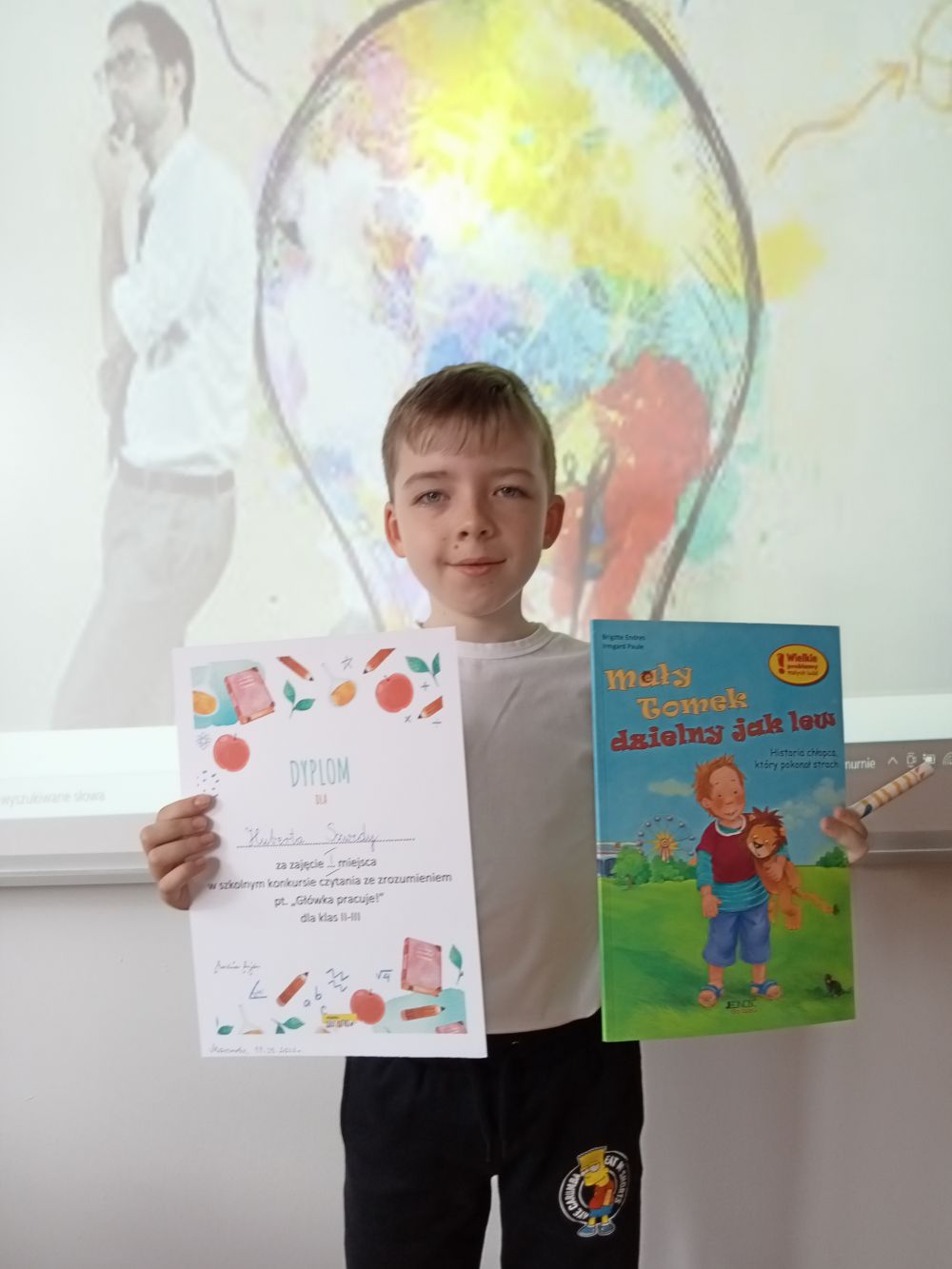 W miniony wtorek odbył się konkurs czytania ze zrozumieniem dla kas II i III pod nazwą "Główka pracuje!". Do konkursu przystąpiło 3 uczniów z klasy II oraz 7 uczniów z klasy III. Podczas konkursu sprawdzone zostało rozumienie tekstu oraz poleceń w zadaniach. Dzieci musiały wykazać się logicznym rozumowaniem, wyszukiwaniem informacji w tekście oraz wyciąganiem wniosków.