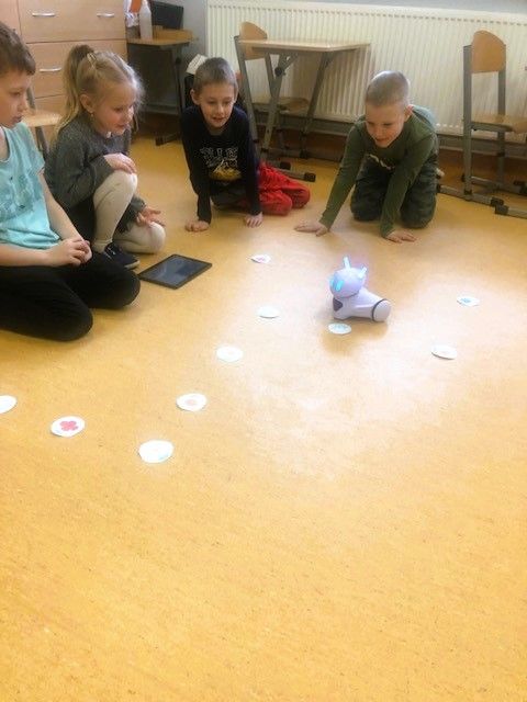 Od kilku tygodni w klasach 1-3 w ramach tego projektu odbywają się zajęcia z robotem Photon. Celem tych zajęć jest przygotowanie uczniów do kreatywnego i świadomego korzystania z technologii cyfrowych poprzez szereg zabaw edukacyjnych, w które włączone są elementy nauki programowania. Uczniowie klasy pierwszej podczas pierwszych zajęć poznali podstawy programowania, rozwijali umiejętność kodowania. Zdobytą wiedzę wykorzystali podczas programowania trasy robota, utrwalania umiejętność orientacji w stronach ciała (lewa, prawa strona), kształtowania umiejętności układania kodu za pomocą symboli, współpracy w grupach. Zajęcia te dostarczyły dzieciom nie tylko wiedzy, ale sprawiły też wiele radości.