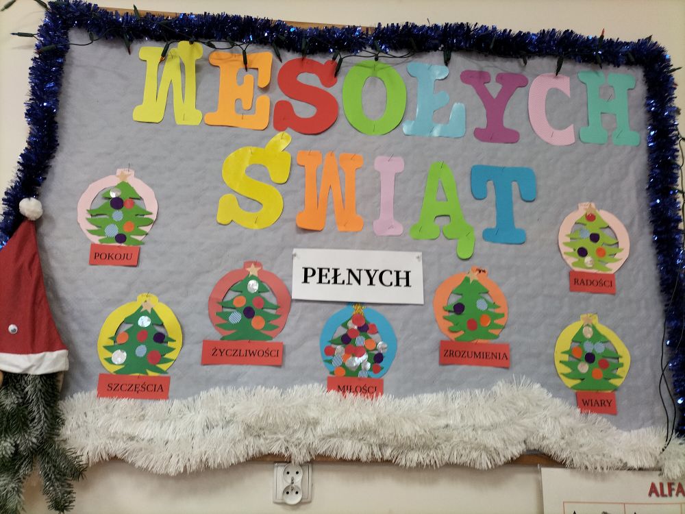 Dzieciom towarzyszyła radosna, ciepła i życzliwa atmosfera. Zadbaliśmy o dekorację sali, wykonując wiele prac plastycznych o zimowo - świątecznej tematyce. Nasza klasa zdobyła I miejsce na najładniejszy wystrój klasy w kategorii kl. I -IV.