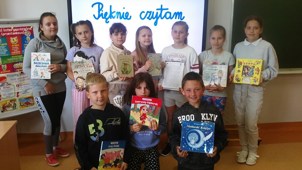 Uczniowie z klas I – III wzięli udział w szkolnym konkursie czytelniczym pt. „Pięknie czytam”. Celem konkursu było rozwijanie zainteresowań czytelniczych dzieci. Każdy uczestnik miał za zadanie przeczytać, wybrany i przygotowany przez siebie, tekst zgodnie z zasadami pięknego czytania. Jury oceniało płynność czytania, bezbłędność, wyrazistość oraz intonację.