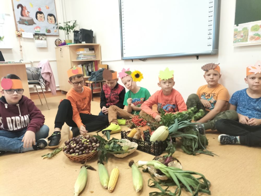 Dzięki zaangażowaniu rodziców w kąciku przyrody pojawiły się dary jesieni: kolorowe liście i kwiaty, żołędzie i kasztany, owoce z sadu i warzywa. Chłopcy mieli możliwość wykazać się wiedzą na temat nowej pory roku poprzez rozwiązywanie zagadek. Był też czas na zabawę przy jesiennej muzyce. Na zakończenie dzieci wykonały kolorowe prace plastyczne.