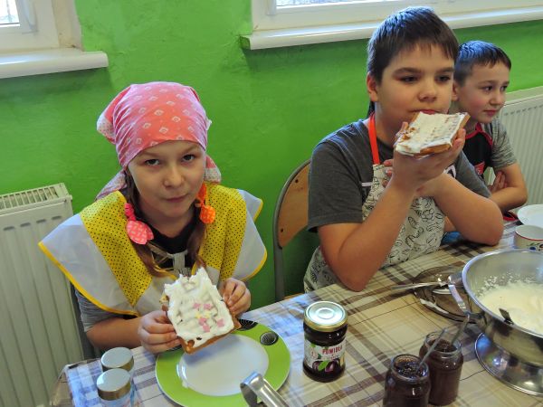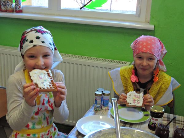 Gofry, ach te gofry czym by bez nich był ten świat? Przekonali się o tym uczniowie klasy III uczęszczający na zajęcia języka kaszubskiego. Na początku nazywaliśmy produkty w języku kaszubskim, potem przygotowaliśmy ciasto wzorując się na dawnych recepturach, piekliśmy, zadbaliśmy o ich estetyczny wygląd. A potem… do dzieła! I smacznego! Bo języka można uczyć się na różne sposoby!