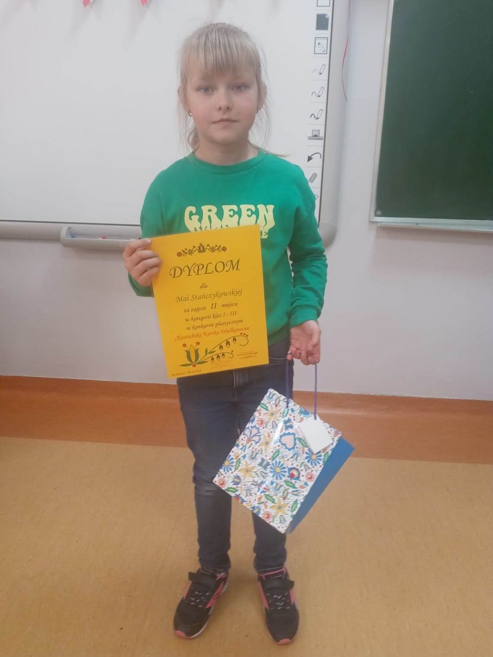 W kwietniu został rozstrzygnięty w naszej szkole konkurs plastyczny na najładniejszą kaszubską kartkę wielkanocną, organizowany przez Izabelę Brzeską nauczycielkę języka kaszubskiego. Celem konkursu było rozbudzenie zainteresowania pięknym zwyczajem obdarowywania się kartkami świątecznymi, propagowanie obchodów Świąt Wielkanocnych, rozwijanie wyobraźni, pobudzenie aktywności twórczej uczniów, rozwijanie wrażliwości estetycznej oraz zainteresowanie sztuką ludową.