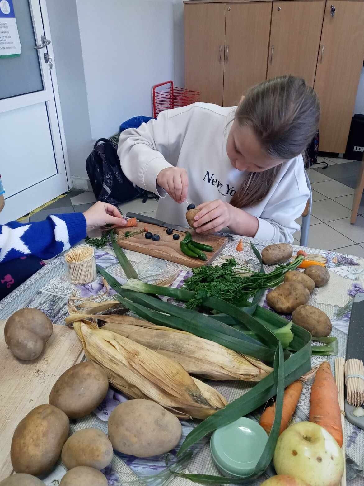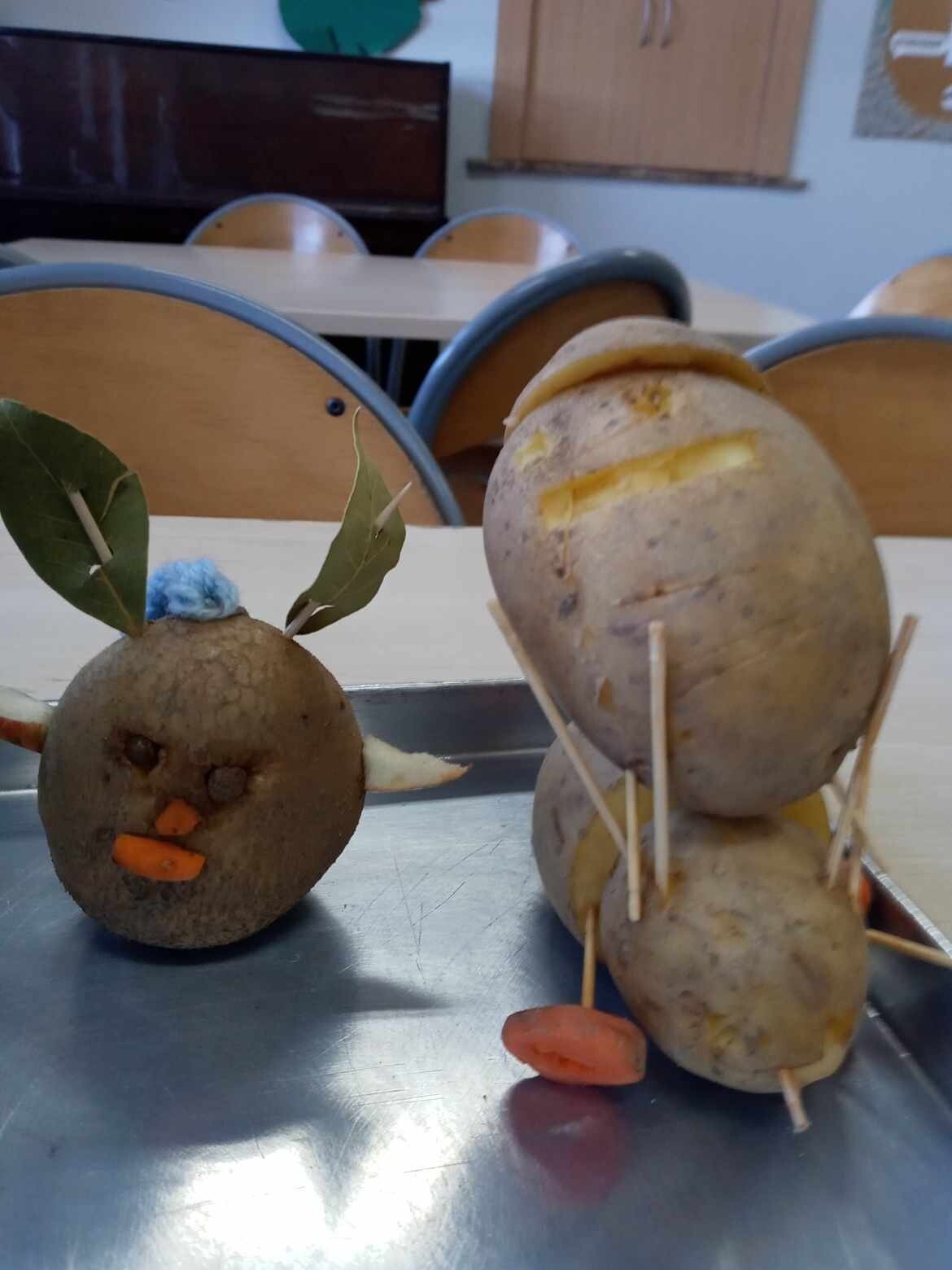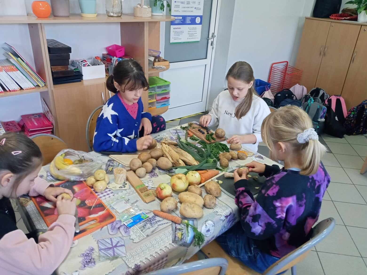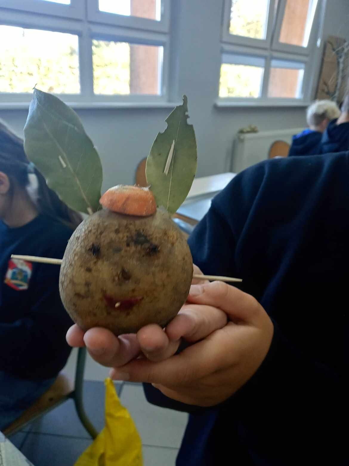 W październiku zrealizowane zostały lekcje z cyklu " Ciekawe lekcje języka kaszubskiego". Uczniowie przypomnieli sobie nazwy warzyw i owoców w języku kaszubskim, ich walory smakowe i zdrowotne. Zwieńczeniem zajęć było wykonanie " Bulwowego Króla i Królowej" oraz zabawnych postaci z warzyw i owoców. Kreatywność uczniów nie zna granic.