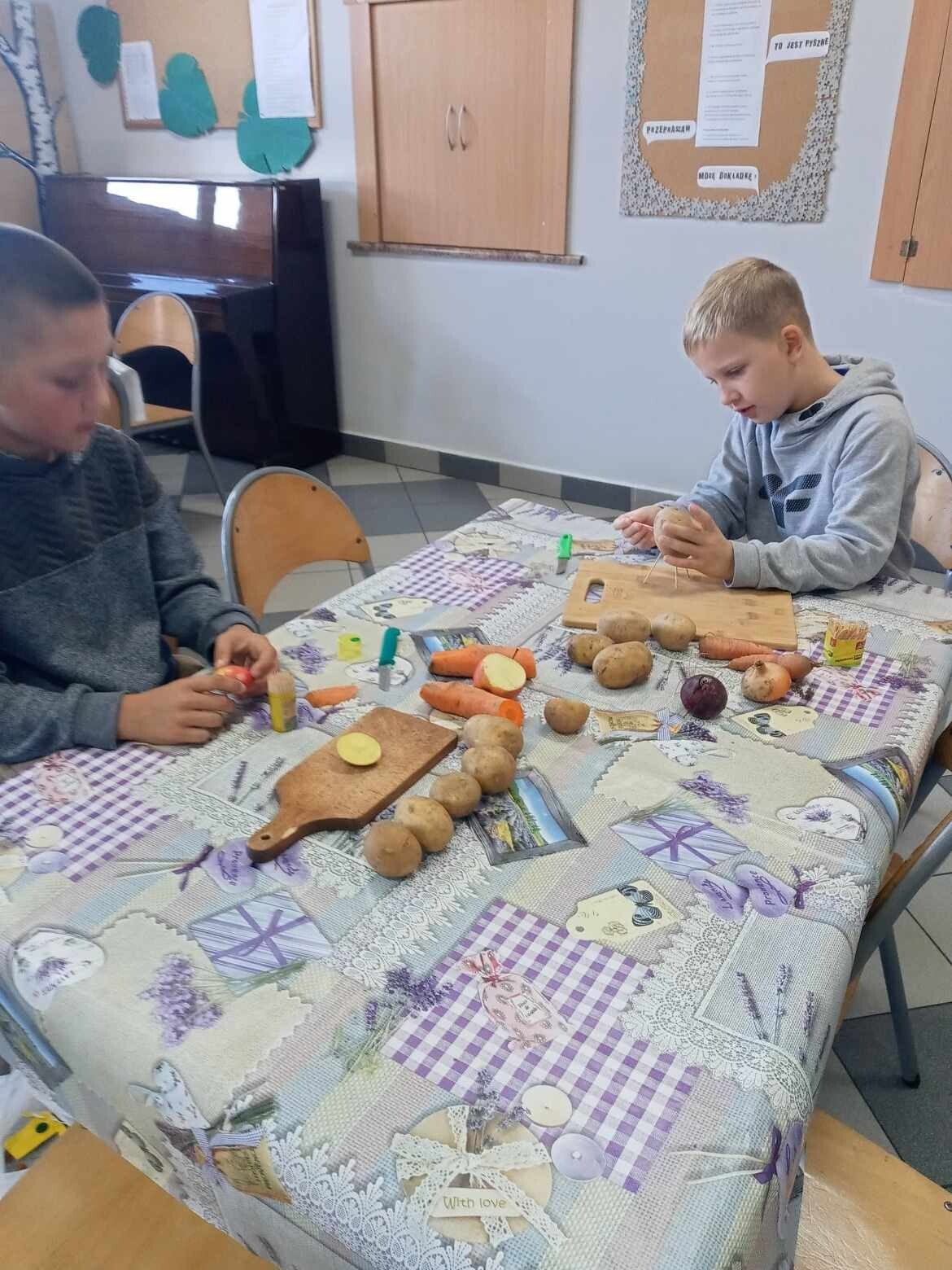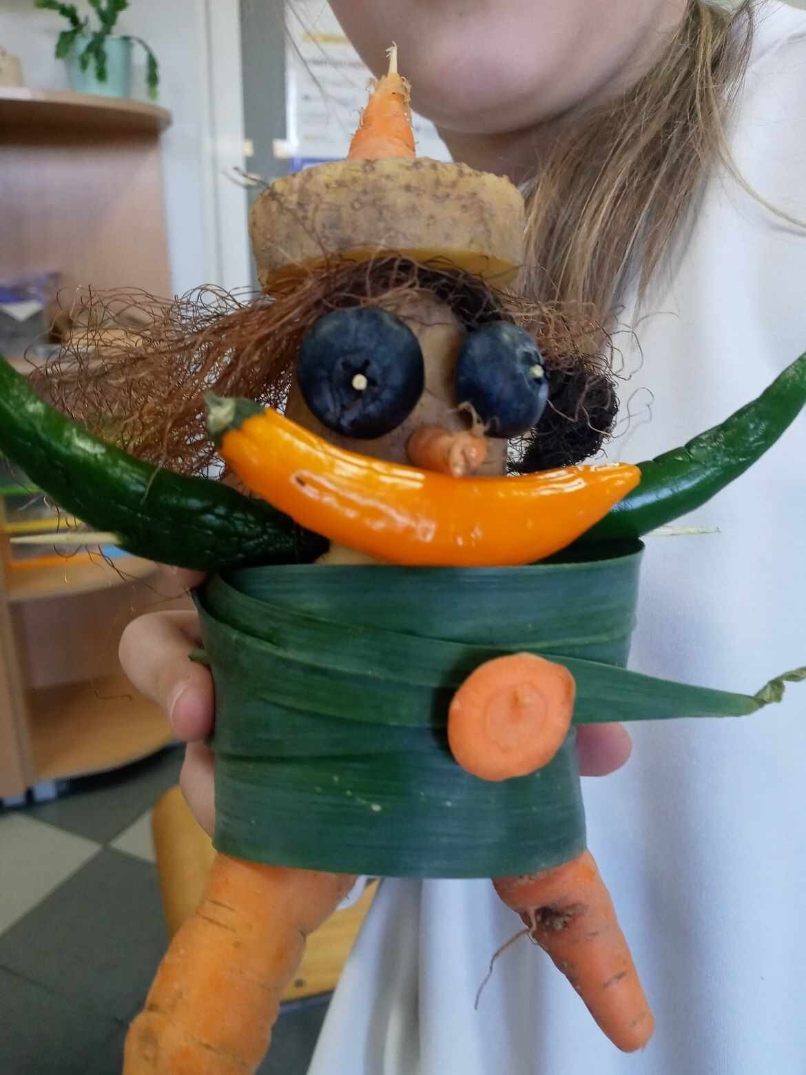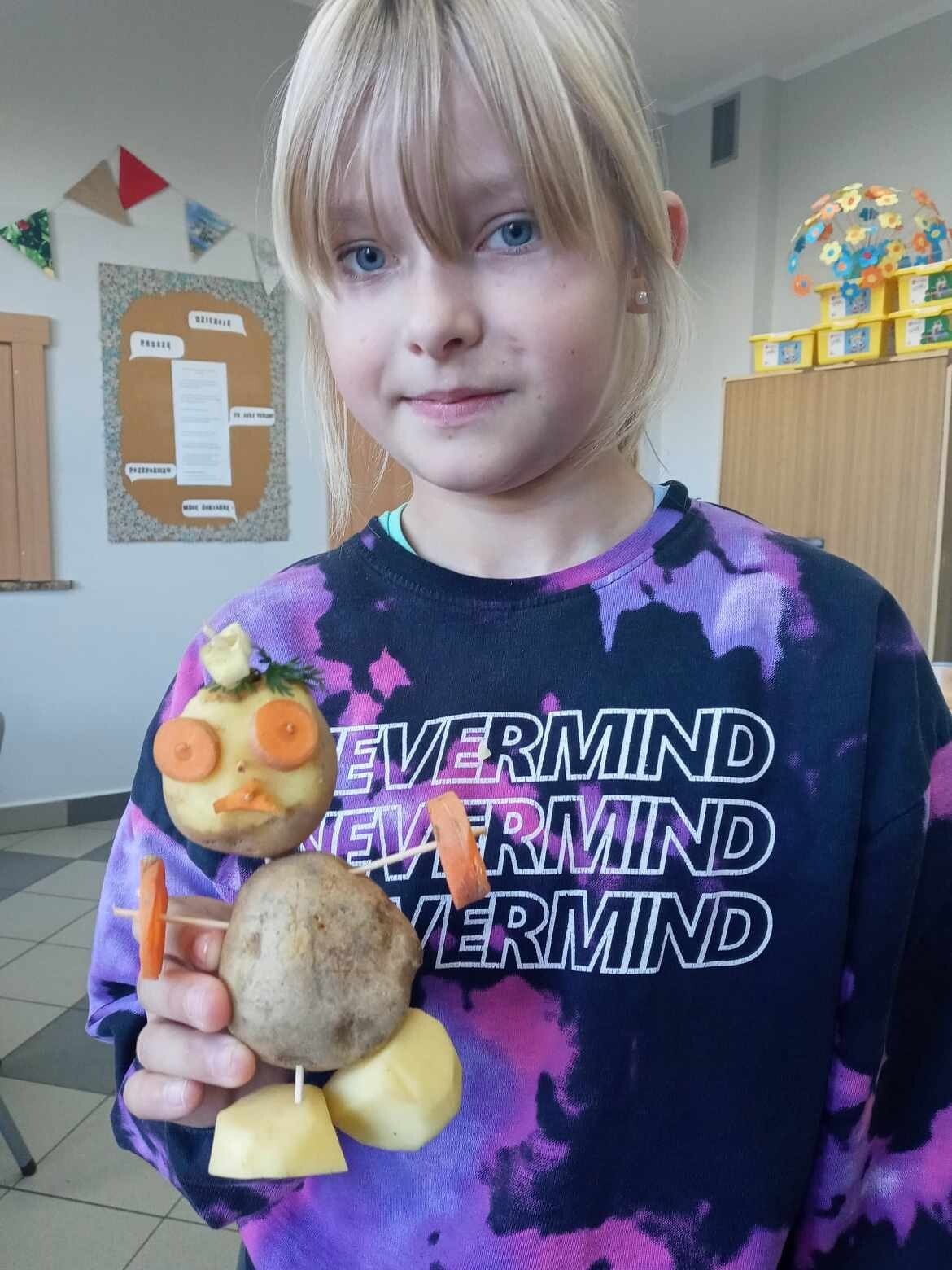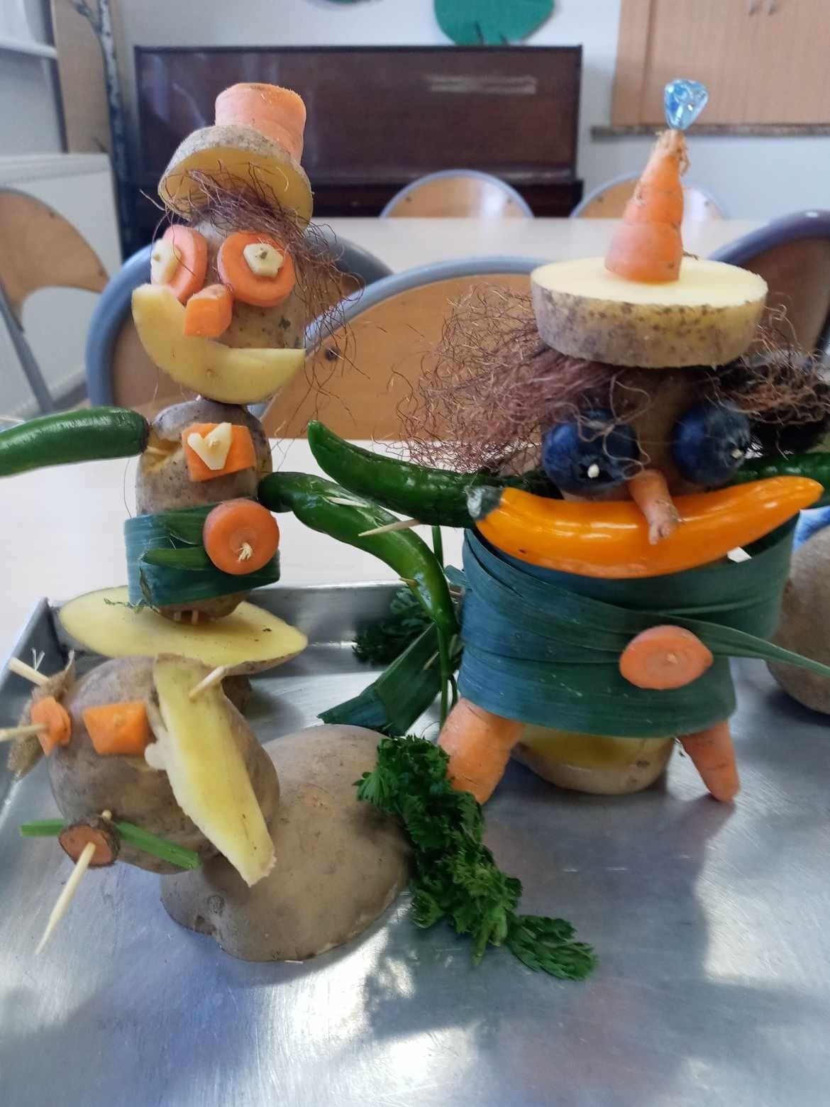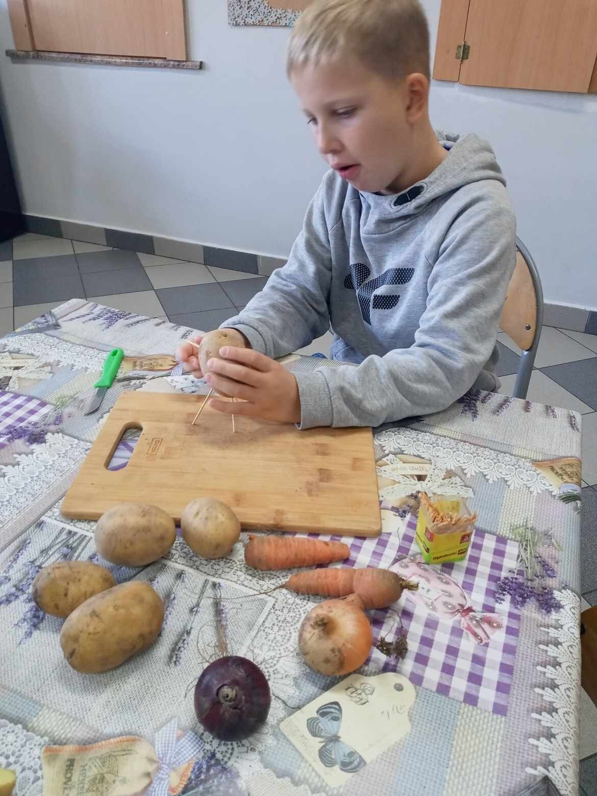 W październiku zrealizowane zostały lekcje z cyklu " Ciekawe lekcje języka kaszubskiego". Uczniowie przypomnieli sobie nazwy warzyw i owoców w języku kaszubskim, ich walory smakowe i zdrowotne. Zwieńczeniem zajęć było wykonanie " Bulwowego Króla i Królowej" oraz zabawnych postaci z warzyw i owoców. Kreatywność uczniów nie zna granic.