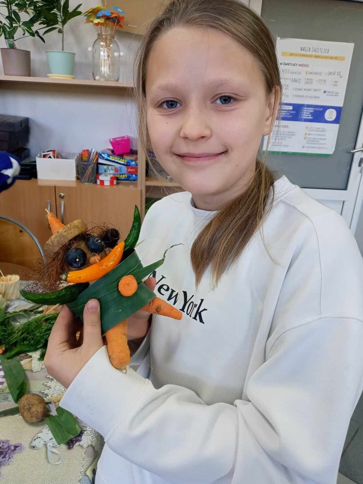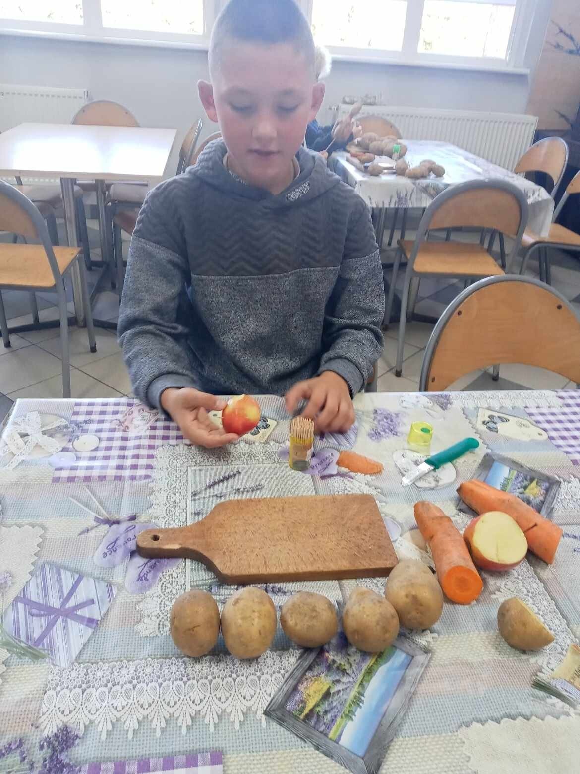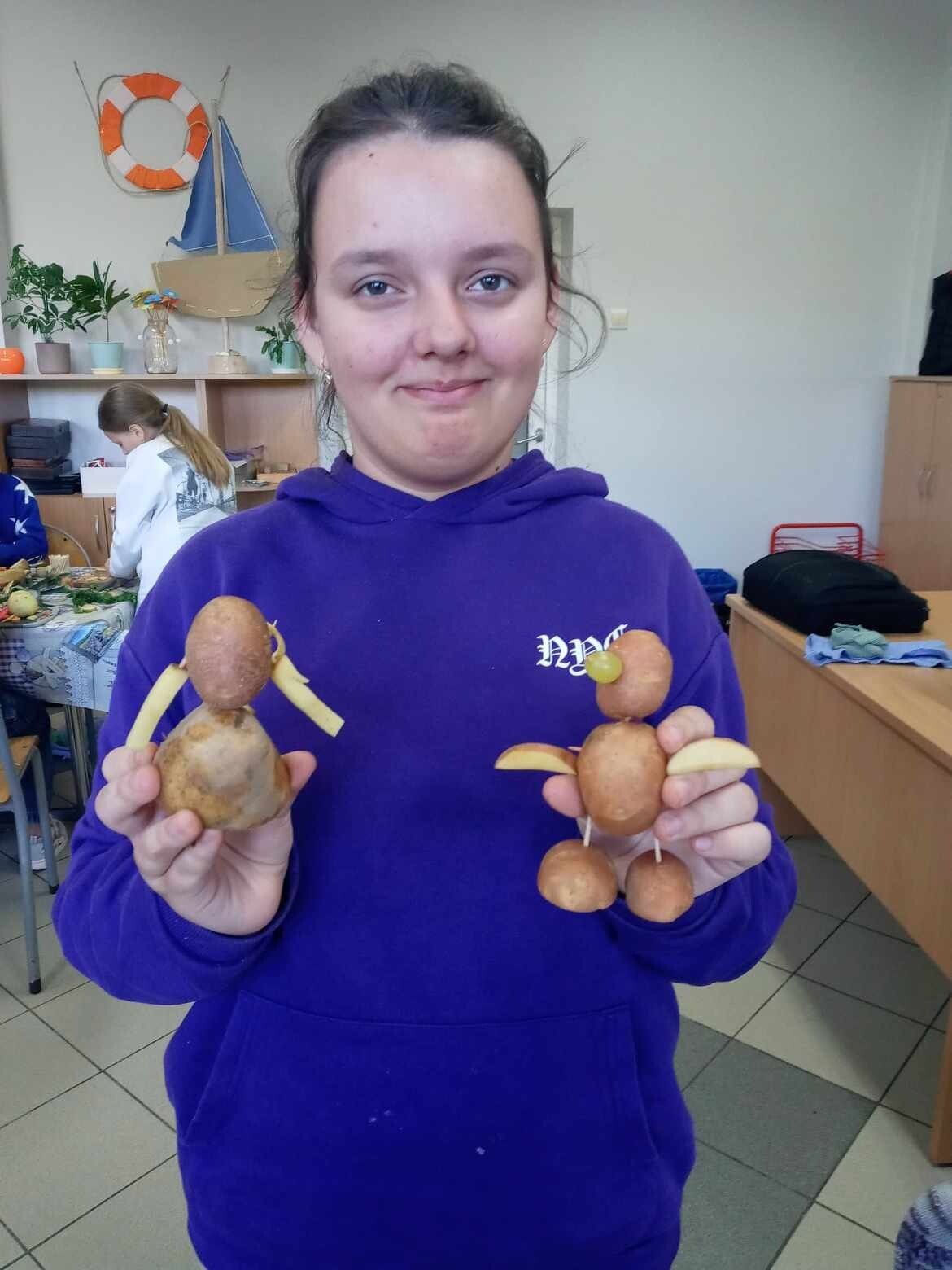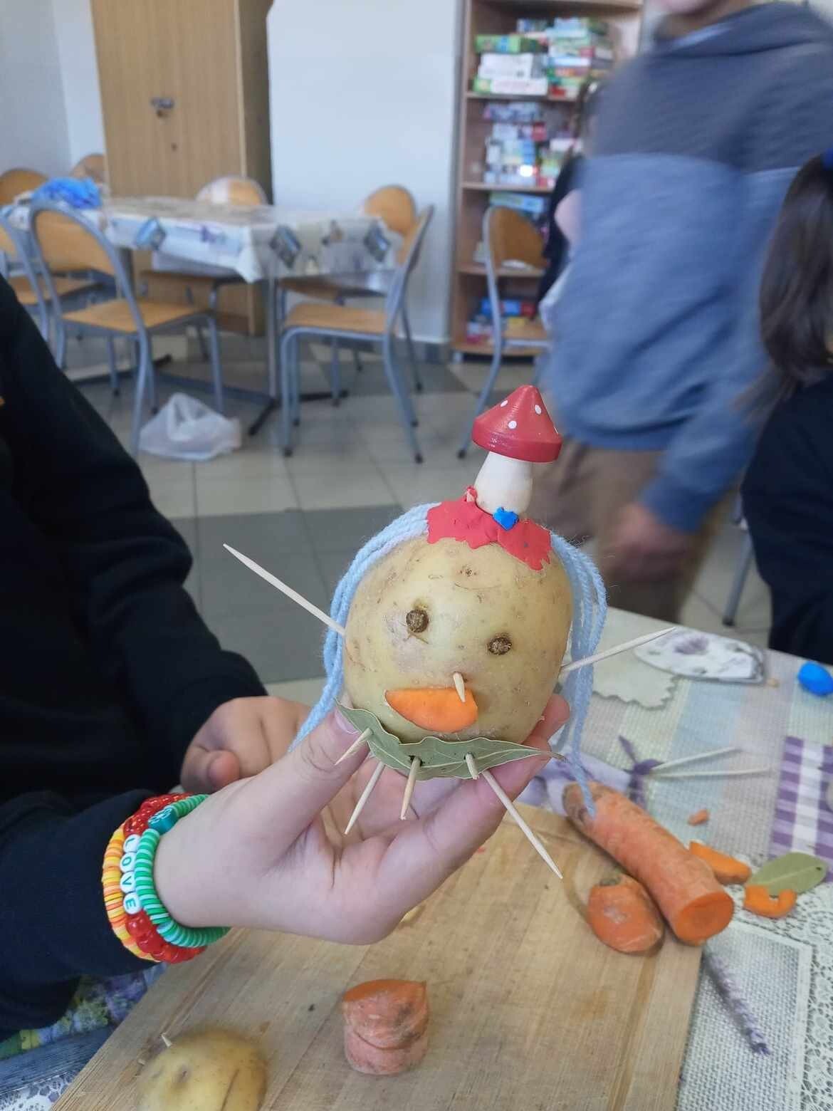 W październiku zrealizowane zostały lekcje z cyklu " Ciekawe lekcje języka kaszubskiego". Uczniowie przypomnieli sobie nazwy warzyw i owoców w języku kaszubskim, ich walory smakowe i zdrowotne. Zwieńczeniem zajęć było wykonanie " Bulwowego Króla i Królowej" oraz zabawnych postaci z warzyw i owoców. Kreatywność uczniów nie zna granic.