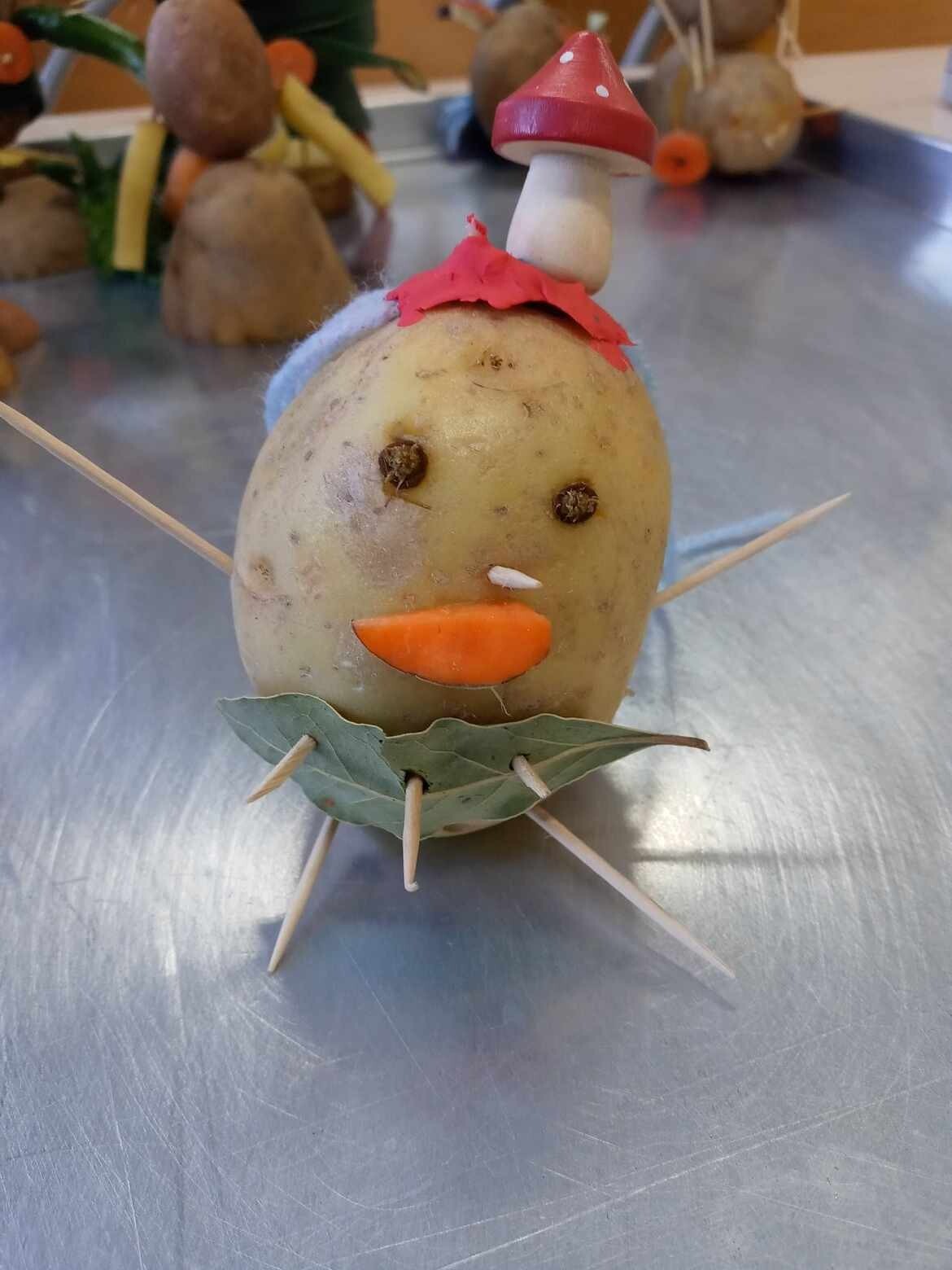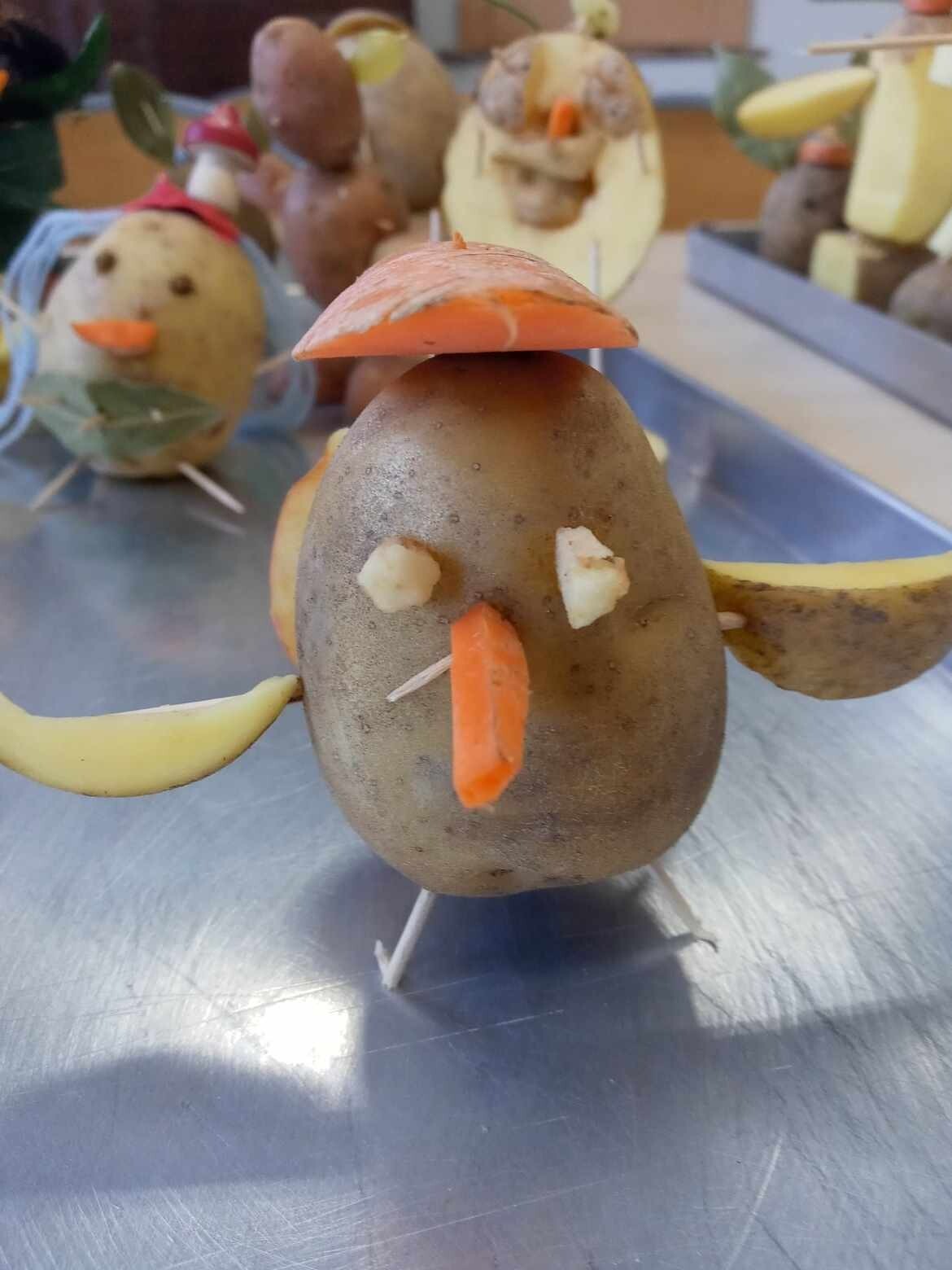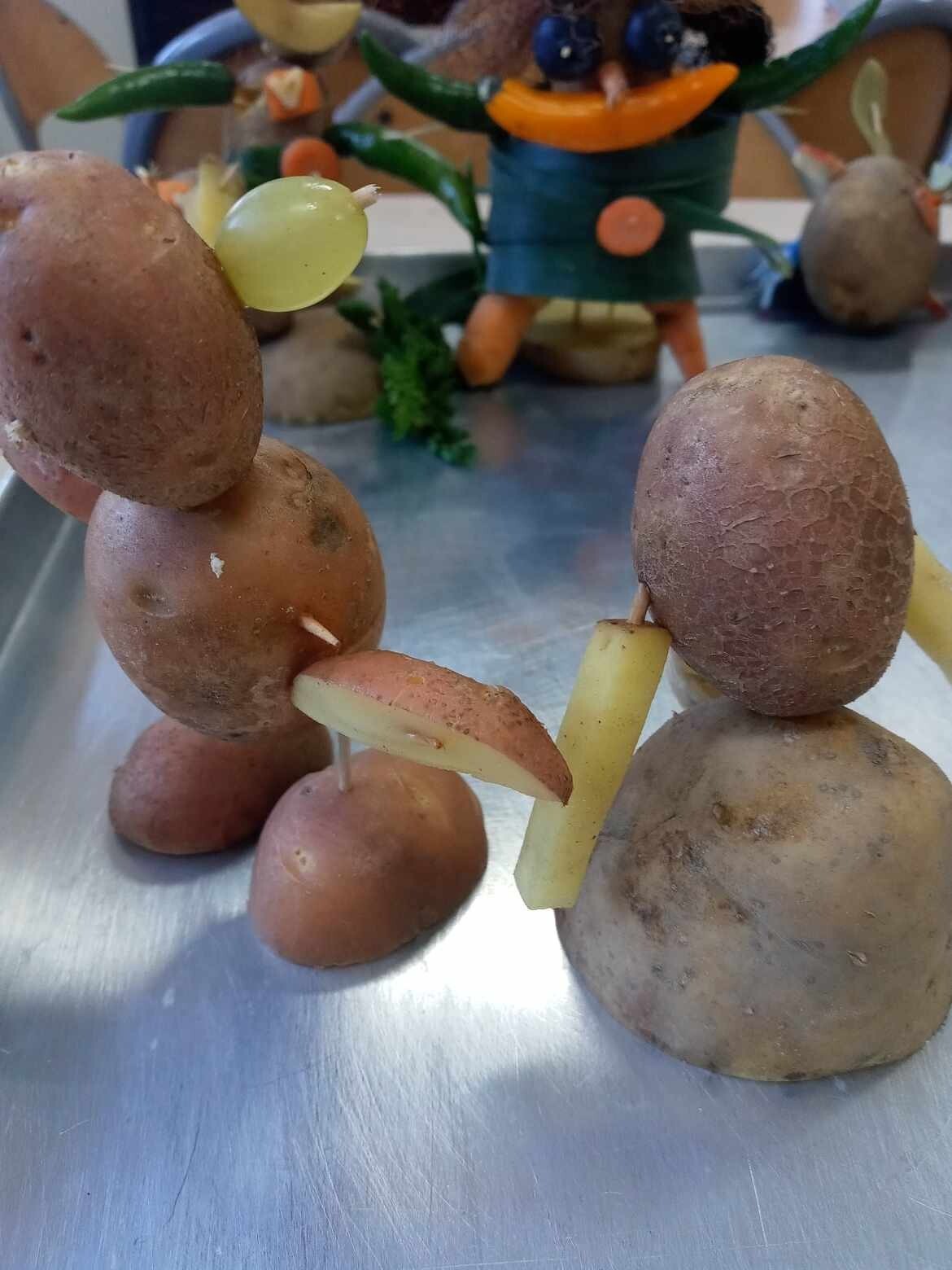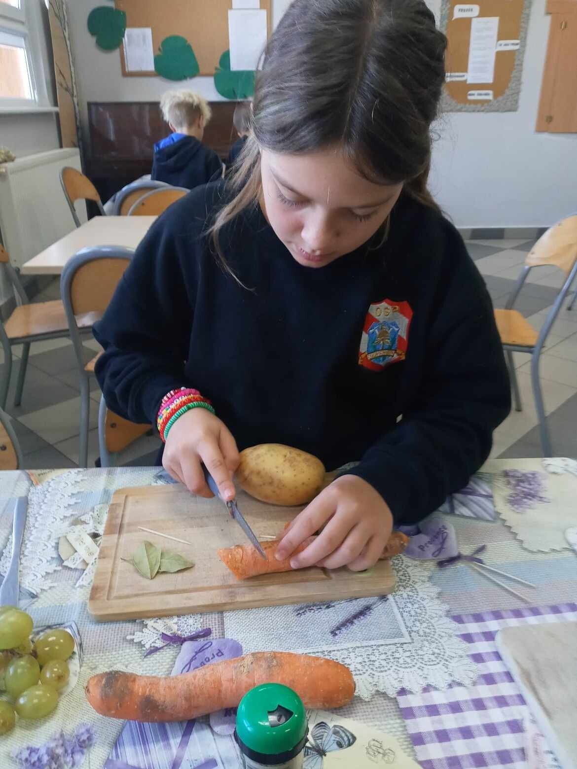 W październiku zrealizowane zostały lekcje z cyklu " Ciekawe lekcje języka kaszubskiego". Uczniowie przypomnieli sobie nazwy warzyw i owoców w języku kaszubskim, ich walory smakowe i zdrowotne. Zwieńczeniem zajęć było wykonanie " Bulwowego Króla i Królowej" oraz zabawnych postaci z warzyw i owoców. Kreatywność uczniów nie zna granic.